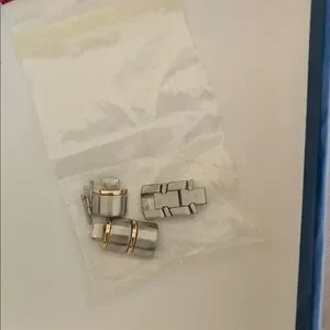 Stylish Seiko watch with gold and silver accents. Features a sleek rectangular blue dial with gold markers. Extra links and all original packaging included.