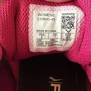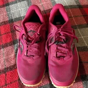 Saucony Peregrine trail running shoes in vibrant pink. Durable and comfortable for any activity.