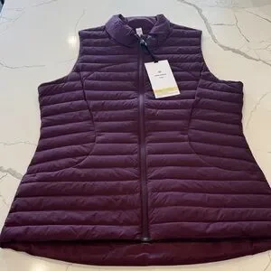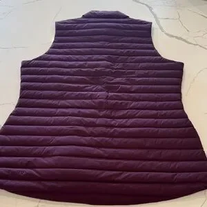 Burgundy vest with down insulation. Windproof and water-resistant. Ideal for outdoor activities.