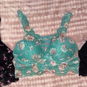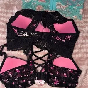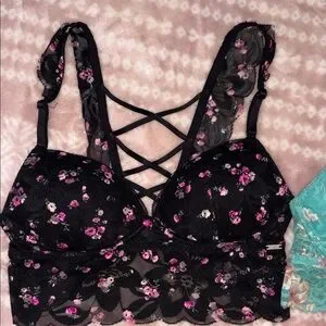 Victoria's Secret Floral and Lace Bra Set - Black, Teal, Black