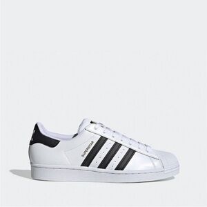 Iconic Adidas sneakers featuring a white base and black stripes. Ideal for everyday style.