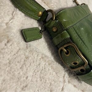 Vintage green patent leather authentic Coach bag. Shoulder bag style. Cream interior in perfect condition.