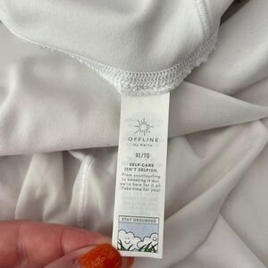 Aerie Offline crossover waistband 2 in 1 shorts. White, size XL. Very good condition but there are some faint spots on the back waistband and back of right leg as pictured.