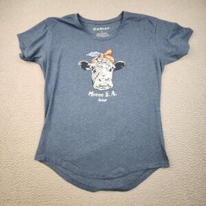 Ariat Shirt Womens Large Blue Moooo S.A. Patriotic Cow Graphic Short Sleeve Tee