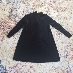Vintage Black Velour Swing Dress Mockneck Long Sleeve Size M