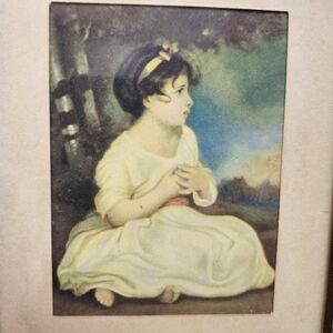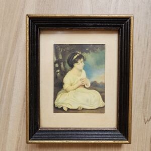 Vintage Mid Cenutry Age of Innocence Girl Miniature Lithograph Framed Print