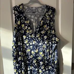Land’s End Sleeveless Navy Dress with Yellow and White Daisy Floral Pattern