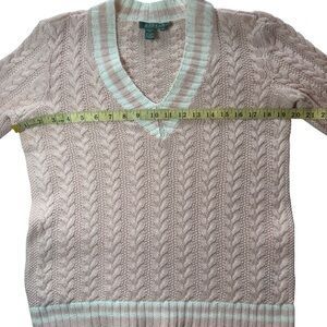 Lauren Ralph Lauren Light Pink V-Neck Medium Cricket Cable Knit Sweater