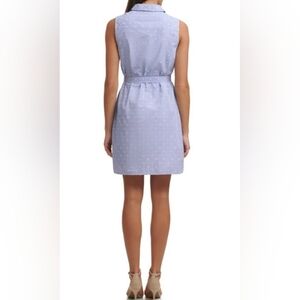 The Tommy Hilfiger Women's Sleeveless Shirt Dress in Dutch Blue is made from 100% cotton, making it a comfortable and versatile option for various occasions.