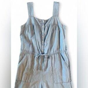 Stylish light blue jumpsuit with button-up and tie detail. Only worn once like new condition.