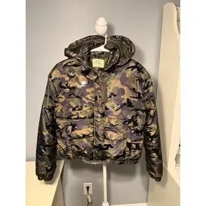 ASHLEY BY 26 INTERNATIONAL Outerwear Camouflage Puffer Jacket Hooded Size S