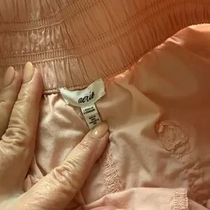 Comfortable light peachy-pink cargo pants from Aerie. Features elastic waistband & 6 pockets. Ultra high waist with a wide leg for a very flattering fit. 💯 cotton for cool comfort. In nearly new condition, no flaws. I also have these in olive green in my closet. See pictures to verify condition and measurements.