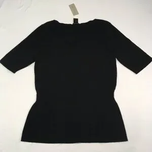 NWT Ann Taylor Black Short Sleeve Sweater w/Ribbed Boat Neck & Waist Detail Sz M
