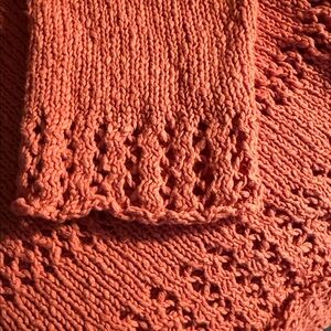 Chic V-neck sweater by R&G poets. Features a warm orange hue and intricate knit design. Perfect for layering. Longer in the back. In good used condition!