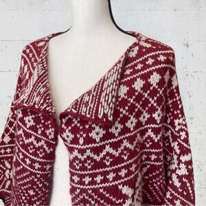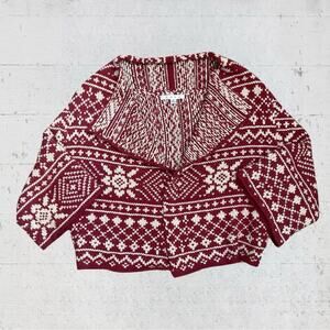 CAbi Red Ivory Fair Isle Nordic Shrug Cardigan Sweater 3/4 Sleeve