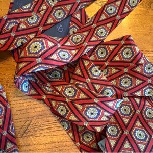 Valentino Cravatte Silk Tie Red & Blue Geometric Pattern- Made In Italy-Vintage