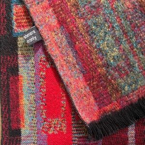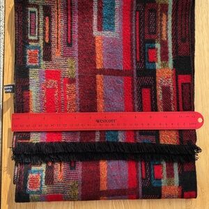 Such a soft Vibrant scarf with geometric patterns. Features red, black, and blue tones. Perfect for adding a pop of color. It’s about 76 x 12 inches. Great used condition. Please see pics and ask any questions you may have