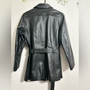 Elevate your style with this sleek black leather jacket. Perfect for any occasion, this jacket offers both comfort and sophistication.