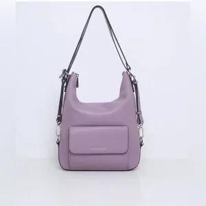Can be worn on the shoulder or as a backpack. Made of cow leather, lining is 100% polyester. Silver hardware. Lightly used and in excellent condition.