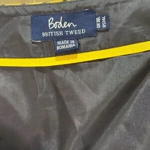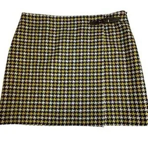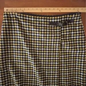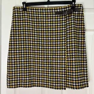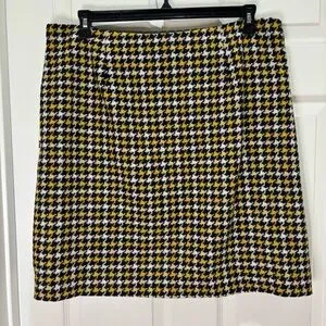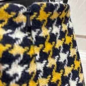 Boden British Tweed 100% Wool Skirt in blue/yellow/white houndstooth