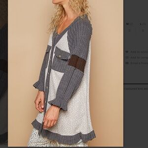 Designed in V-neck long sleeve roomy fit cardigan in textured knit with contrast paneling.