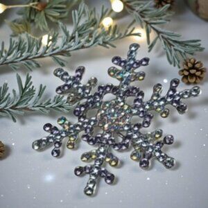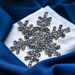 This gorgeous snowflake brooch features dazzling Aurora Borealis crystals in stunning shades of sky blue, purple, and lavender, all set in a sleek silvertone finish. Measuring 2" x 2", it’s the perfect accessory to celebrate the beauty of winter and the magic of the holidays!
