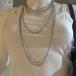 Enhance your style with this elegant silver layered necklace. Perfect for any occasion, this piece adds a touch of sophistication to your outfit.