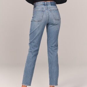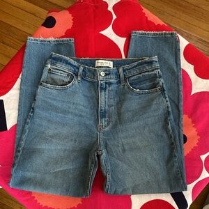 Abercrombie & Fitch The Mom High Rise Jean Sz 29 Straight Leg Raw Frayed Hem Grunge