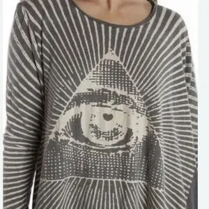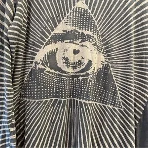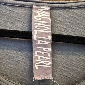 Magnolia Pearl Eye of God with heart shaped “eye” in color Ozzy. Distressing, fading and trademark Magnolia Pearl “mouse holes” at shoulders and neck. Wonderful, versatile piece. Gently used in like new condition.One size (fits range of 6/8 to 22/24).