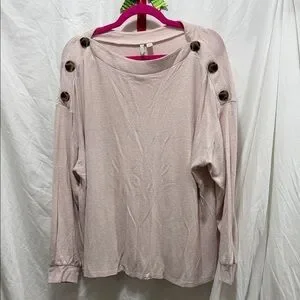 Elegant Light Pink Button-Accent Sweatshirt