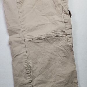 Style & Co Womens 14 Khaki Embroidered Roll Tab Hem Capri Pant Capri Drawstring