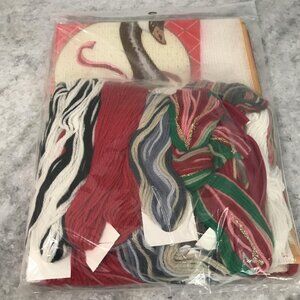 Kit contents: 100% wool tapestry yarn; metallic thread; felt backing; cording; needle
