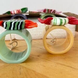Anthropologie Bon Bon Napkin Rings, a set of four candy-shaped art glass napkin rings