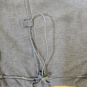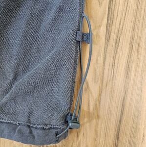 Features: Soft fabrication with stretchy feel; square neckline and detailed bust seaming; large side pockets; ruching around the knee; elastic ankle cuffs; straight-leg bottom; adjustable drawstring waistband.