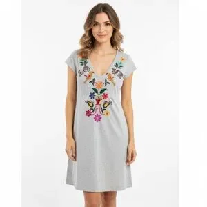 Johnny Was JWLA Love, Floral, and Birds Gray Tunic Dress - Size Medium