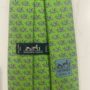 HERMES Horses with Rider in Vivid Green Luxury Silk Tie EUC