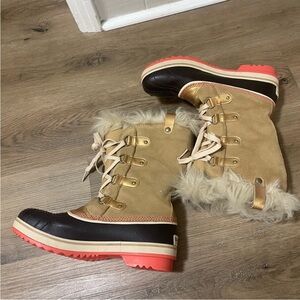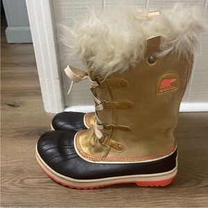Sorel tan and gold Winter Boots with faux fur size 7