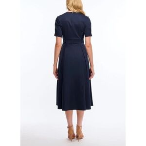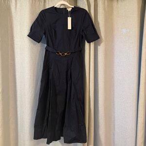 $398 Shoshanna Castell Cotton Cheryl Dress Navy Midi A-Line Chain Belt Pockets 4