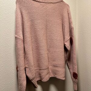 Chic pink sweater with charming brown floral designs. Ideal for casual wear.