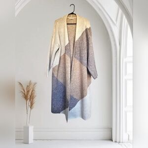 Stay cozy and stylish with this colorblock open front cardigan. Perfect for layering, this sweater features a blend of neutral tones for a versatile look.