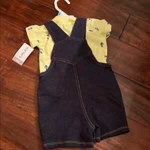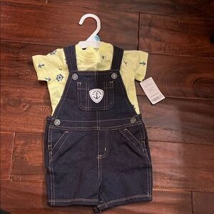 New with tags carters soft shorts overalls and yellow ship wheel and anchor tshirt