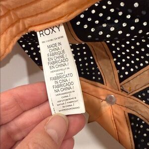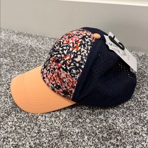 Vibrant Colorful Roxy hat with a peach brim. NWT. Features a lively mix of colors with navy back. Perfect for playful outings, sporty, activewear, versatility, beach, outdoor sports.
