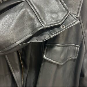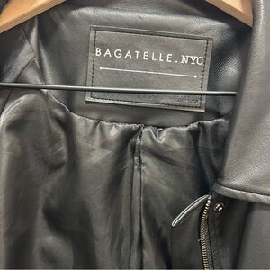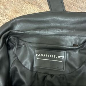 Stylish black military jacket by Bagatelle. Features sleek design and multiple pockets. Perfect for a modern look. Used condition. Material around neck is damaged, shown in photos. Inner lining ripped by tag.