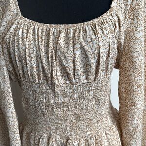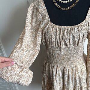Princess Polly Cream Smocked Sundress with Long Bishop Sleeves