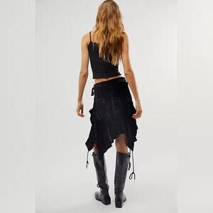 Free People Paxton Parachute Velvet Utility Skirt - Black - Size 6
