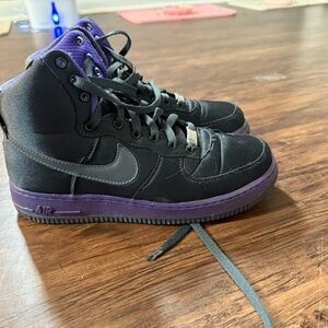 High Top Air Force Nike's Velvety Black with Purple Accent, Size 9.5