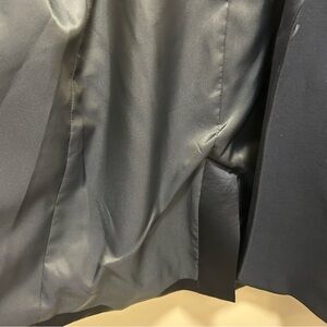 Sophisticated blazer in midnight blue. Features sleek satin details. Ideal for formal events. Gently used condition.