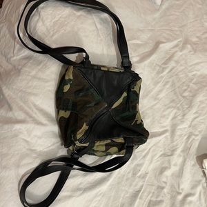 Leather and camo Cross body and backpack