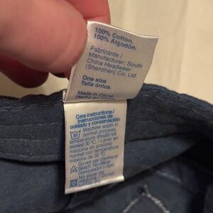 Blue chambray denim distressed baseball cap hat with logo and adjustable strap by Morpho. Purchased while in Costa Rica. Worn just once and in great condition!