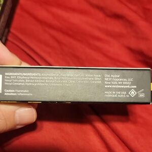 Elegant fragrance by NEST with bright yellow floral design. Citrine scent in a sleek black package. this is a spray not roller. Text details visible on the side.